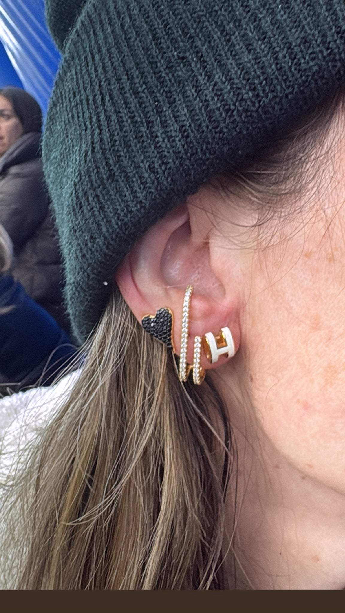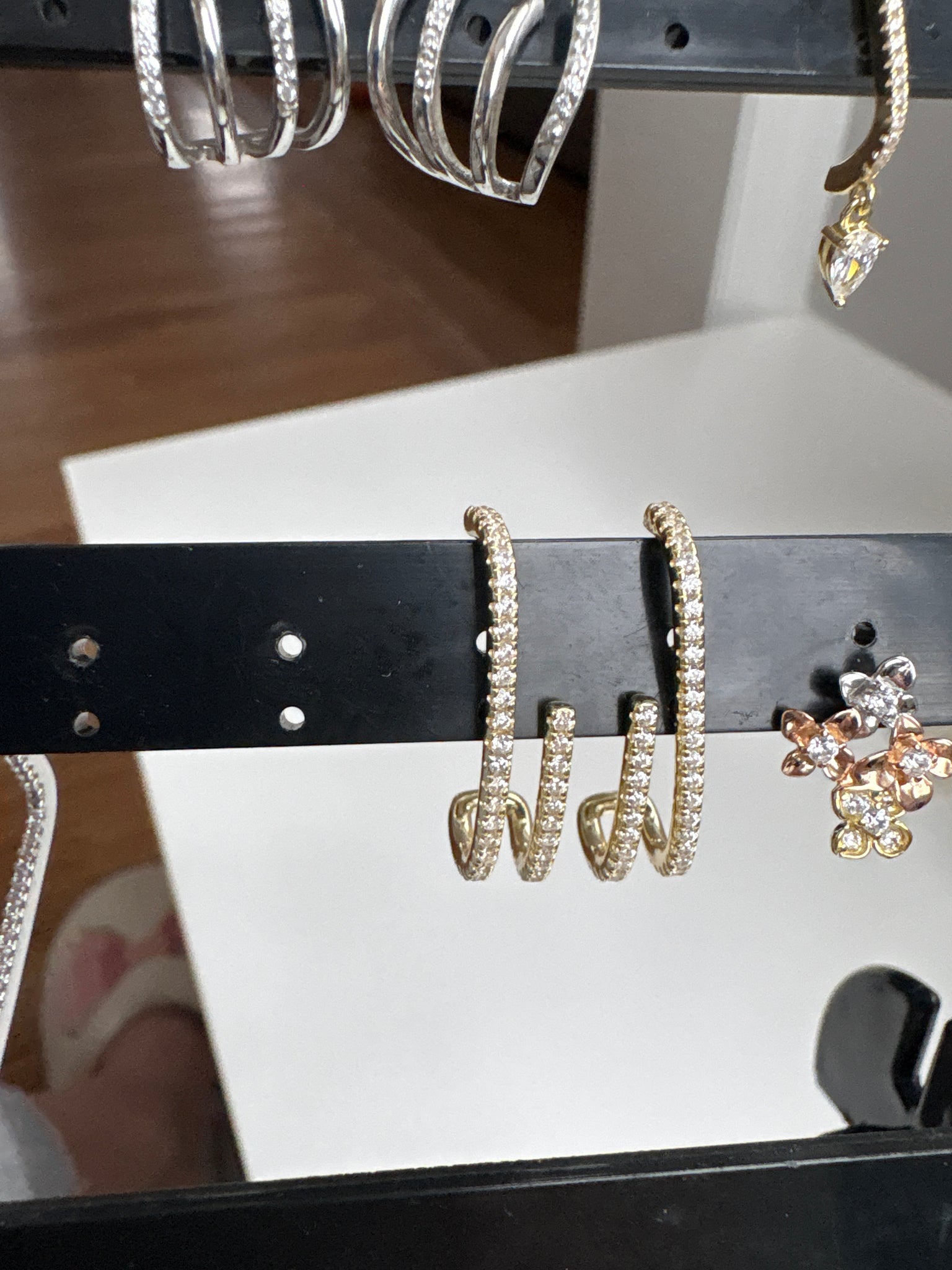 These elegant huggie earrings feature a slim, elongated drop fully lined with shimmering pavé stones for a refined, high-shine finish. The design hugs the ear comfortably.