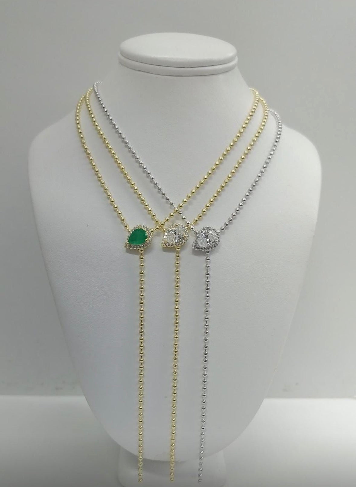 • Beaded chain with pear shaped cz stone